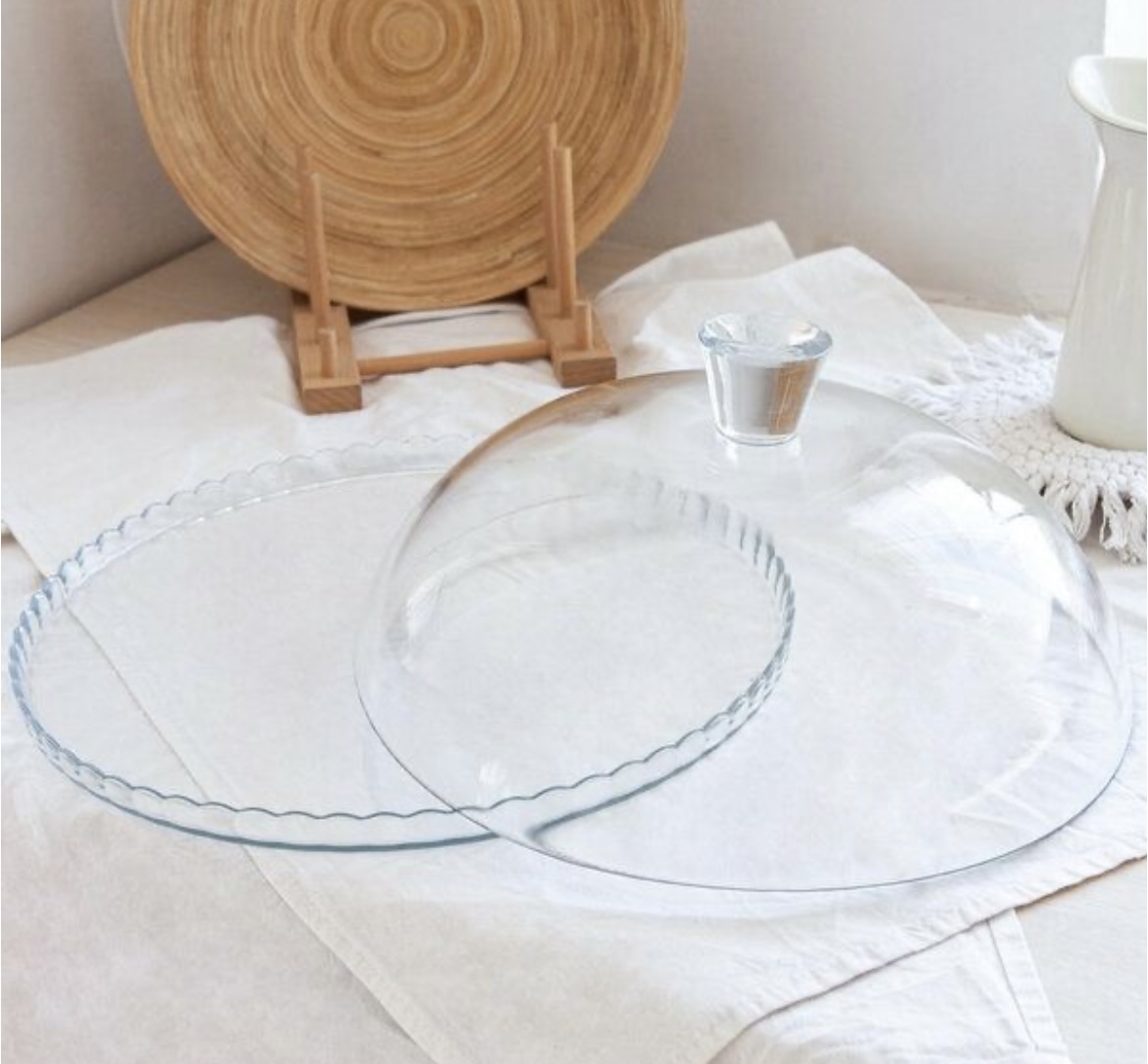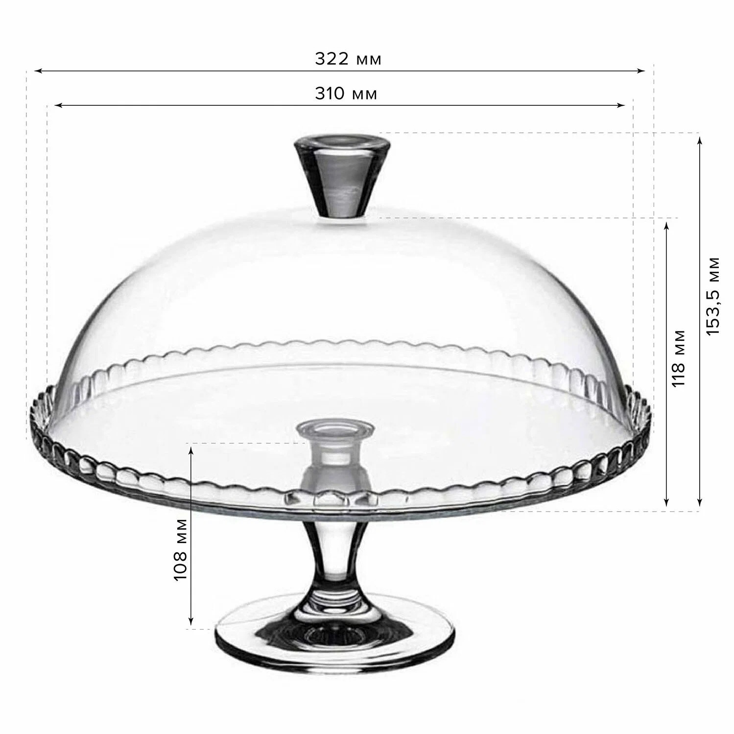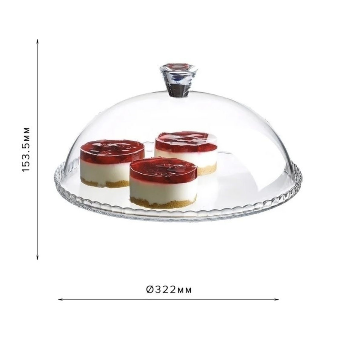Стеклянная колба, клош тортница. Ширина 32,2 см. Высота 11,8 см.