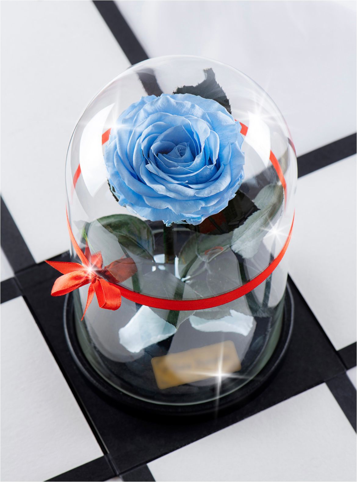 Живая долговечная роза в колбе голубого цвета, не вянет на протяжении 5 лет и долгие годы будет радовать своего получателя. Композиция хорошо подходит для любого праздника, любого повода и без повода. Также хорошо подходит для интерьера и хорошая альтернатива срезанным цветам которые вянут через 3-4 дня. Наша розочка будет поднимать настроение и напоминать о Вас на протяжении каждого дня.