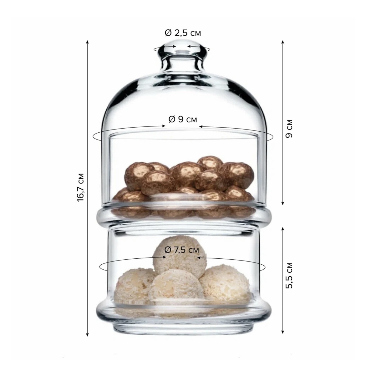 Стеклянная колба, клош тортница. Ширина 32,2 см. Высота 15,5 см.