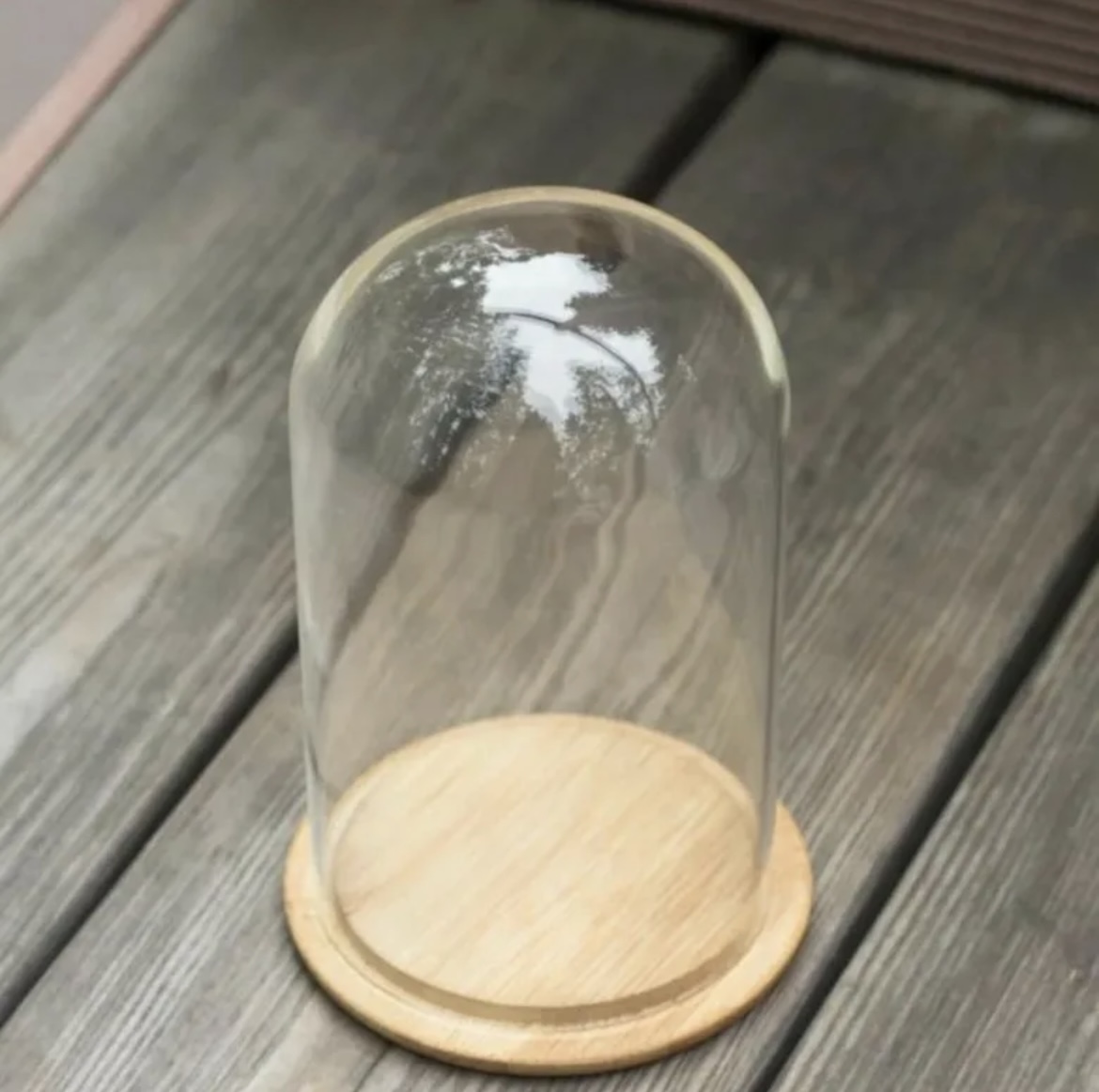 Стеклянная колба, клош. Ширина 15 см. Высота 10 см.