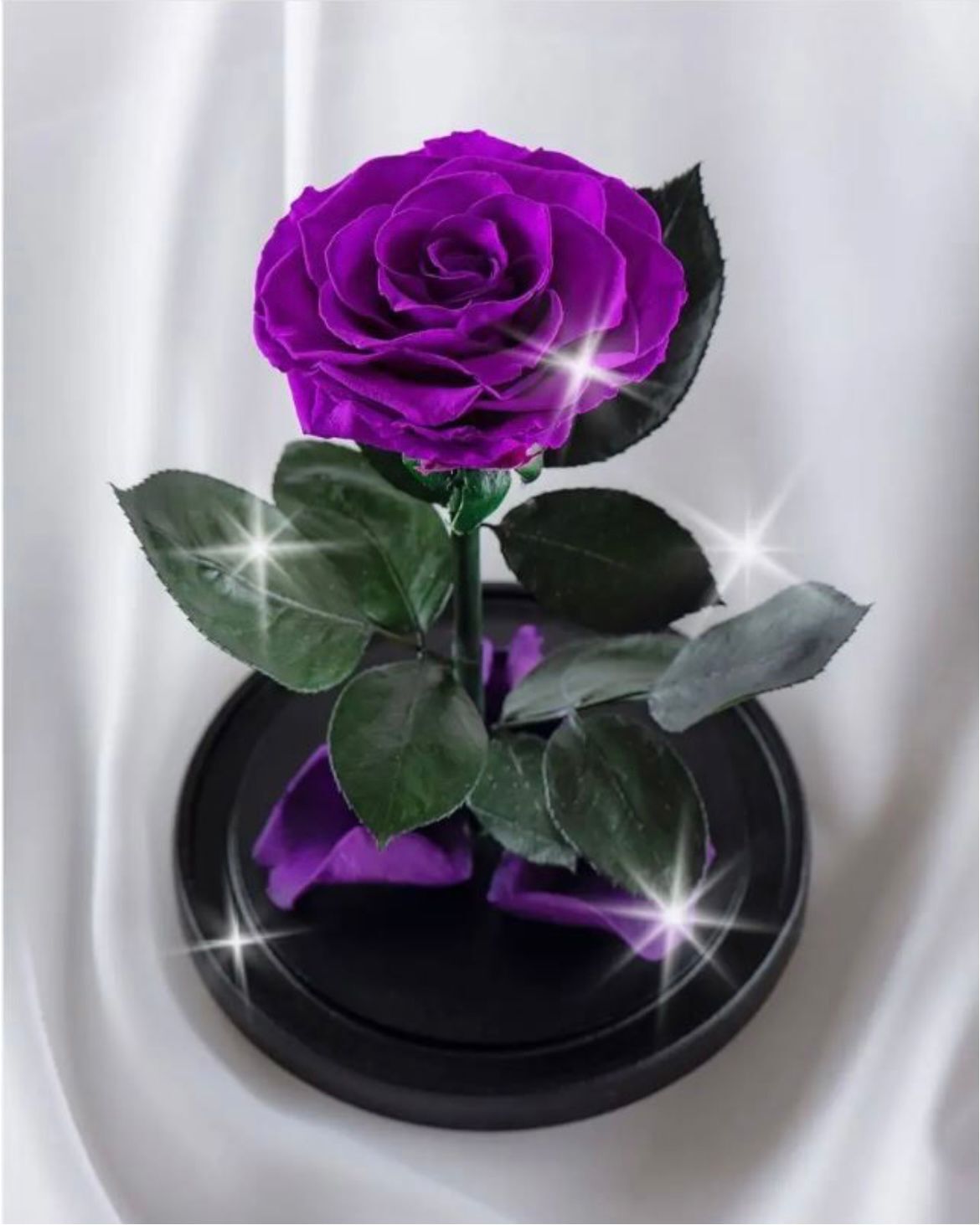 Живая долговечная роза в колбе фиолетового цвета, не вянет на протяжении 5 лет и долгие годы будет радовать своего получателя. Композиция хорошо подходит для любого праздника, любого повода и без повода. Также хорошо подходит для интерьера и хорошая альтернатива срезанным цветам которые вянут через 3-4 дня. Наша розочка будет поднимать настроение и напоминать о Вас на протяжении каждого дня.